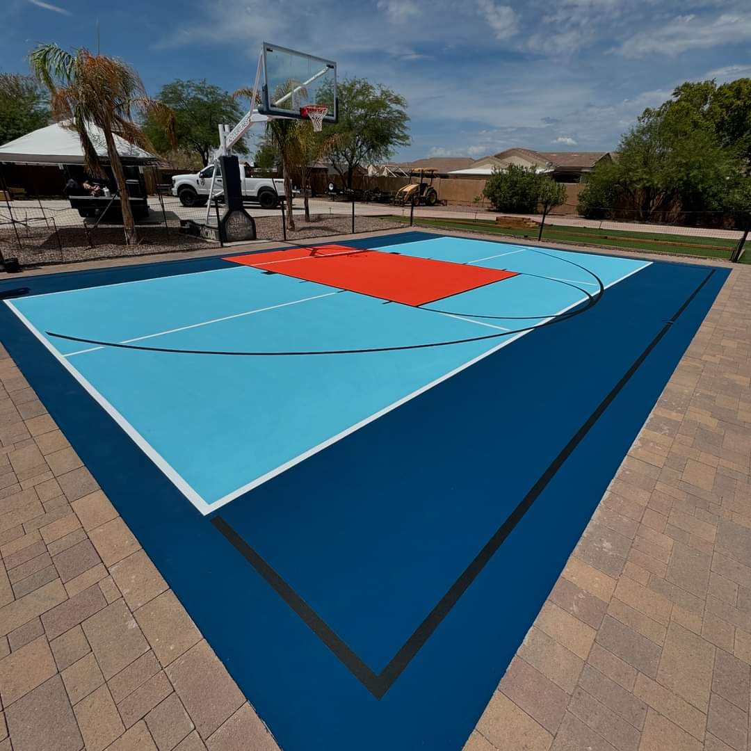 An extremely popular trend these days is combination or multi-purpose courts. Basketball-Pickleball combo courts work really well, since they require a small footprint for a full-size pickleball and half-basketball court. These are easy to build and fit into many backyards or playgrounds. By using a combination of different colored zones and lines, our installers can layout a beautiful multi-use court for both sports. This is a great way to maximize the area of asphalt or concrete for 2 completely different sports.